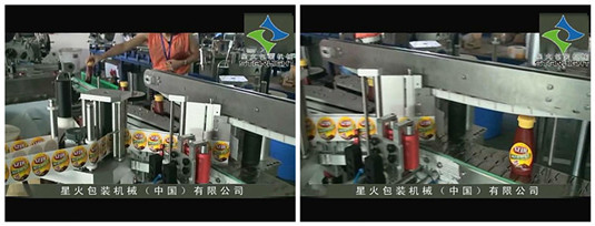該設備按照客戶要求定制,可進行單側和雙側的貼標生產(chǎn),圖有星火自貢貼標機公司提供。