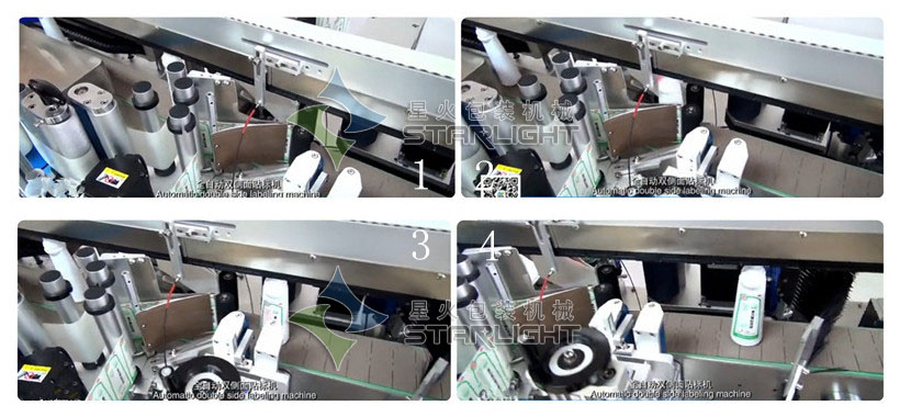 星火廣元貼標(biāo)機(jī)系列——全自動雙側(cè)面貼標(biāo)機(jī)(XH-T-712)適用于圓瓶、方瓶、扁瓶的單面和雙側(cè)面貼標(biāo),如日常生活中洗發(fā)水扁瓶,洗衣液扁瓶、潤滑油扁瓶,洗手液圓瓶、消毒液圓瓶等雙側(cè)面貼標(biāo),兩面同貼,雙側(cè)面貼提高企業(yè)生產(chǎn)效率,廣泛應(yīng)用于日化、化妝品、石化、醫(yī)藥等行業(yè)。